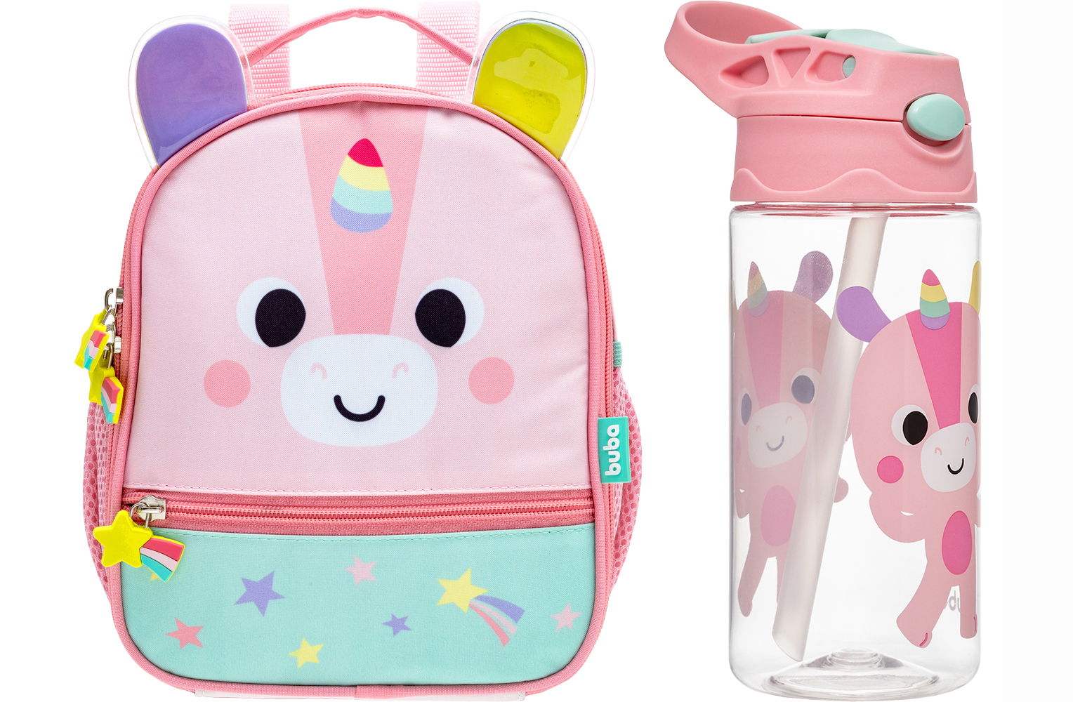 Kit Completo Buba Unicórnio - Garrafinha de Tritan 450ml + Lancheira Térmica
