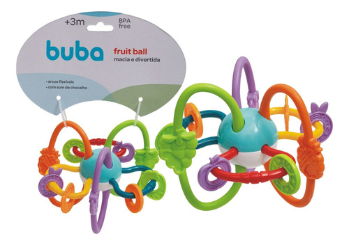 O Mordedor e Chocalho Fruit Ball da Buba é macio e super flexível, ideal para o bebê interagir com cores, formas e para massagear a gengiva aliviando o desconforto dos dentinhos que estão nascendo. É leve, não machuca o bebê, emite som de chocalho e tem design divertido, com tamanho ideal para as mãozinhas pequenas agarrarem com facilidade.