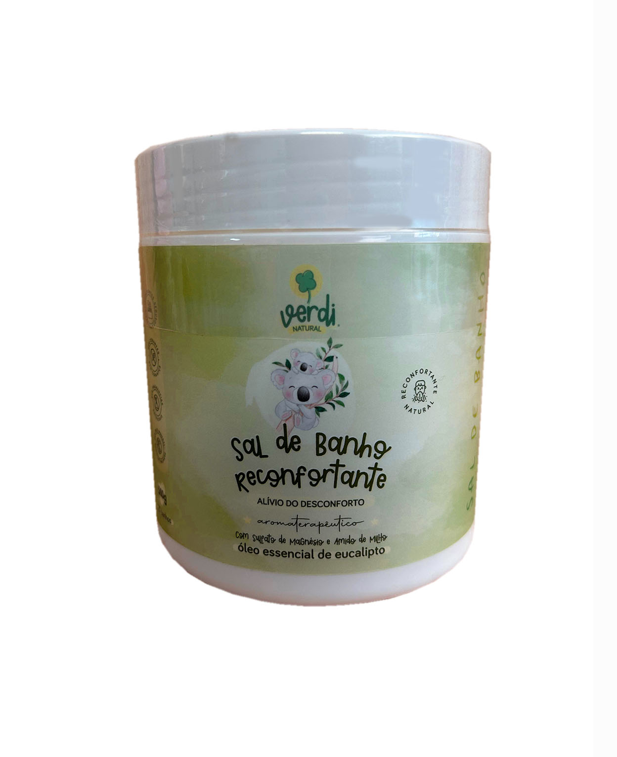 O Sal de Banho Reconfortante da Verdi Natural é vegano, não testado em animais e vem em embalagem reciclável. É livre de fragrâncias sintéticas, corantes artificiais, parabenos, sulfatos e outros componentes agressivos, o que garante um cuidado seguro e natural para toda a família.